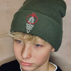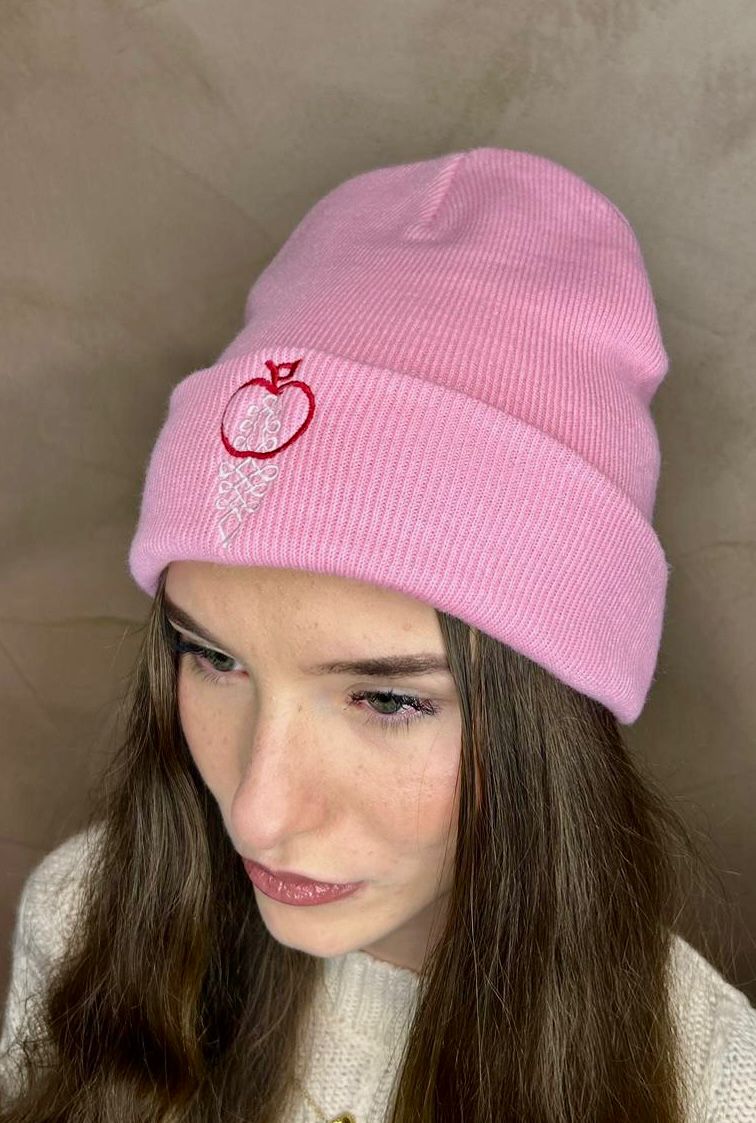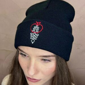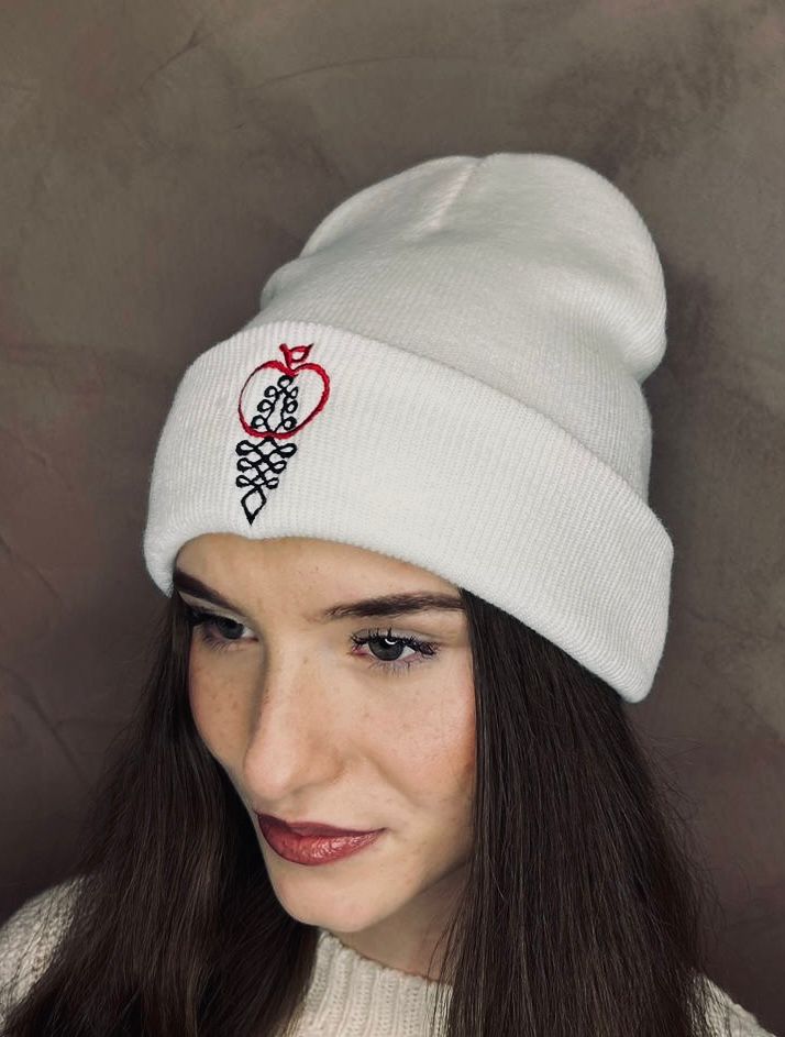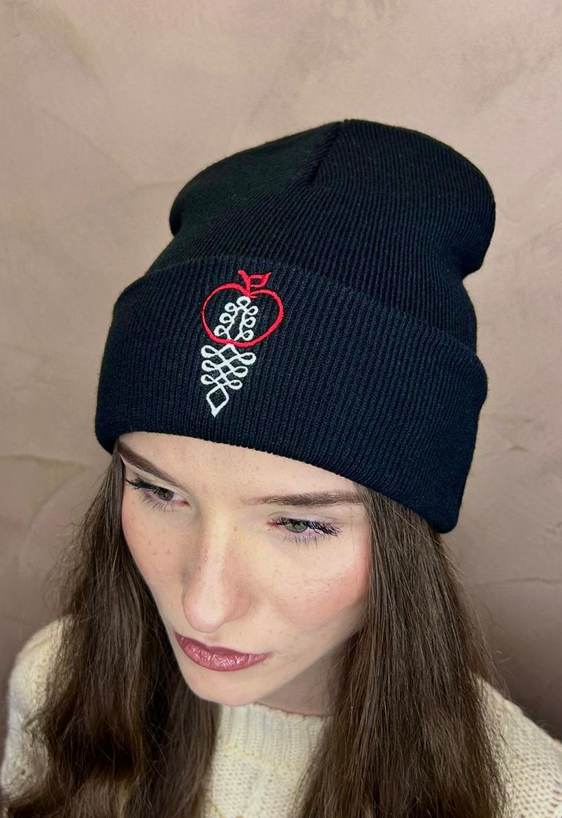 Úpletová zimná čiapka s výšivkou