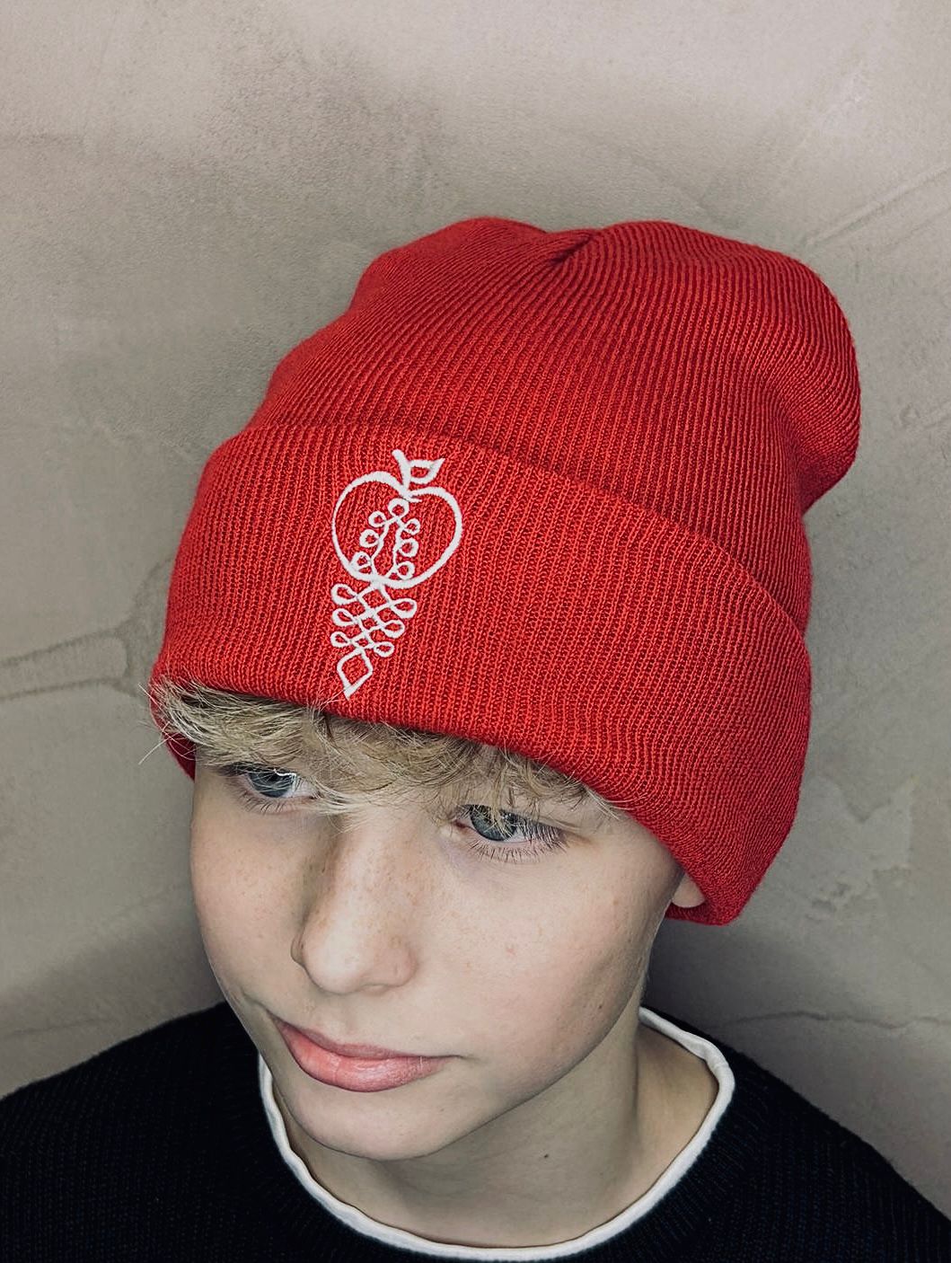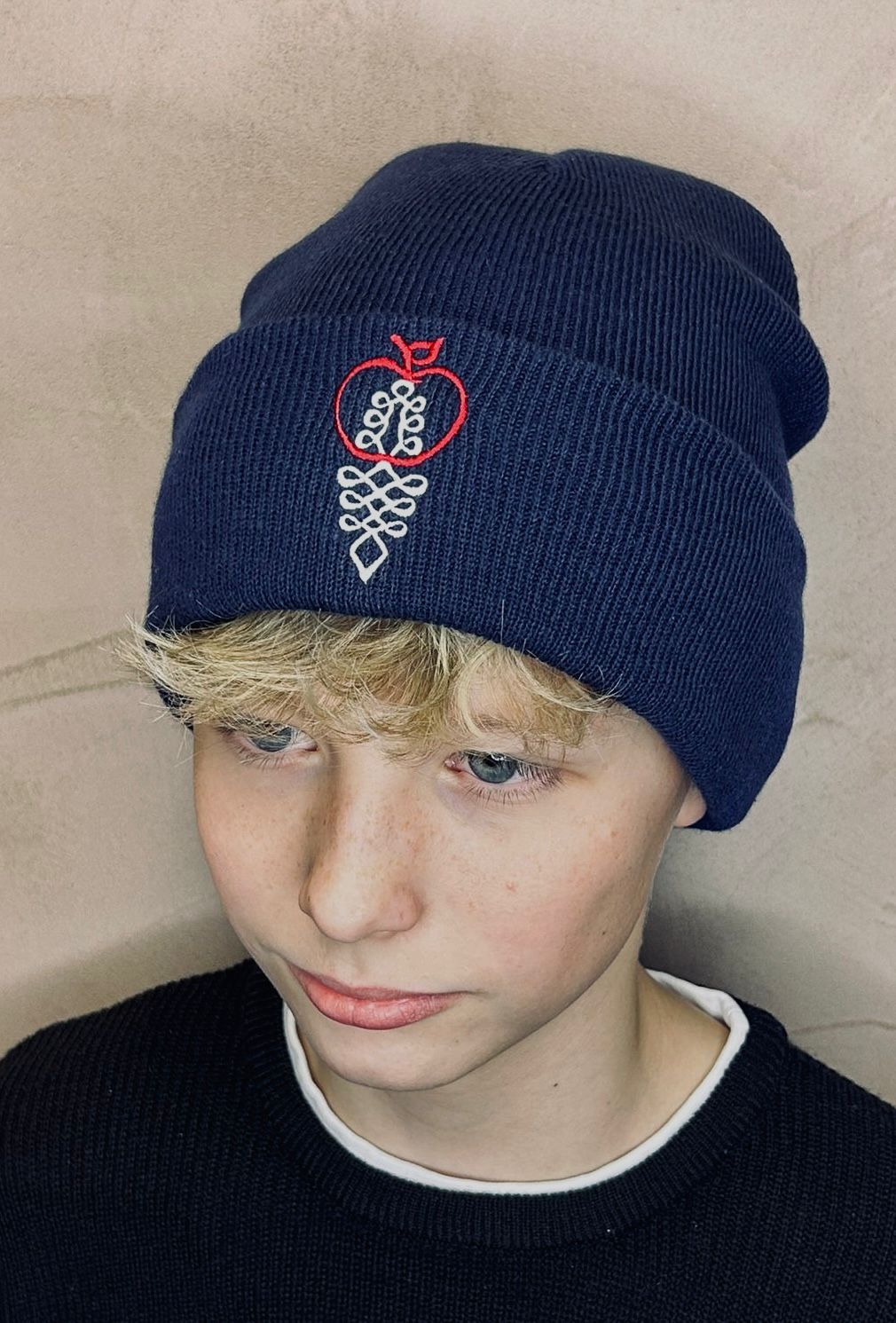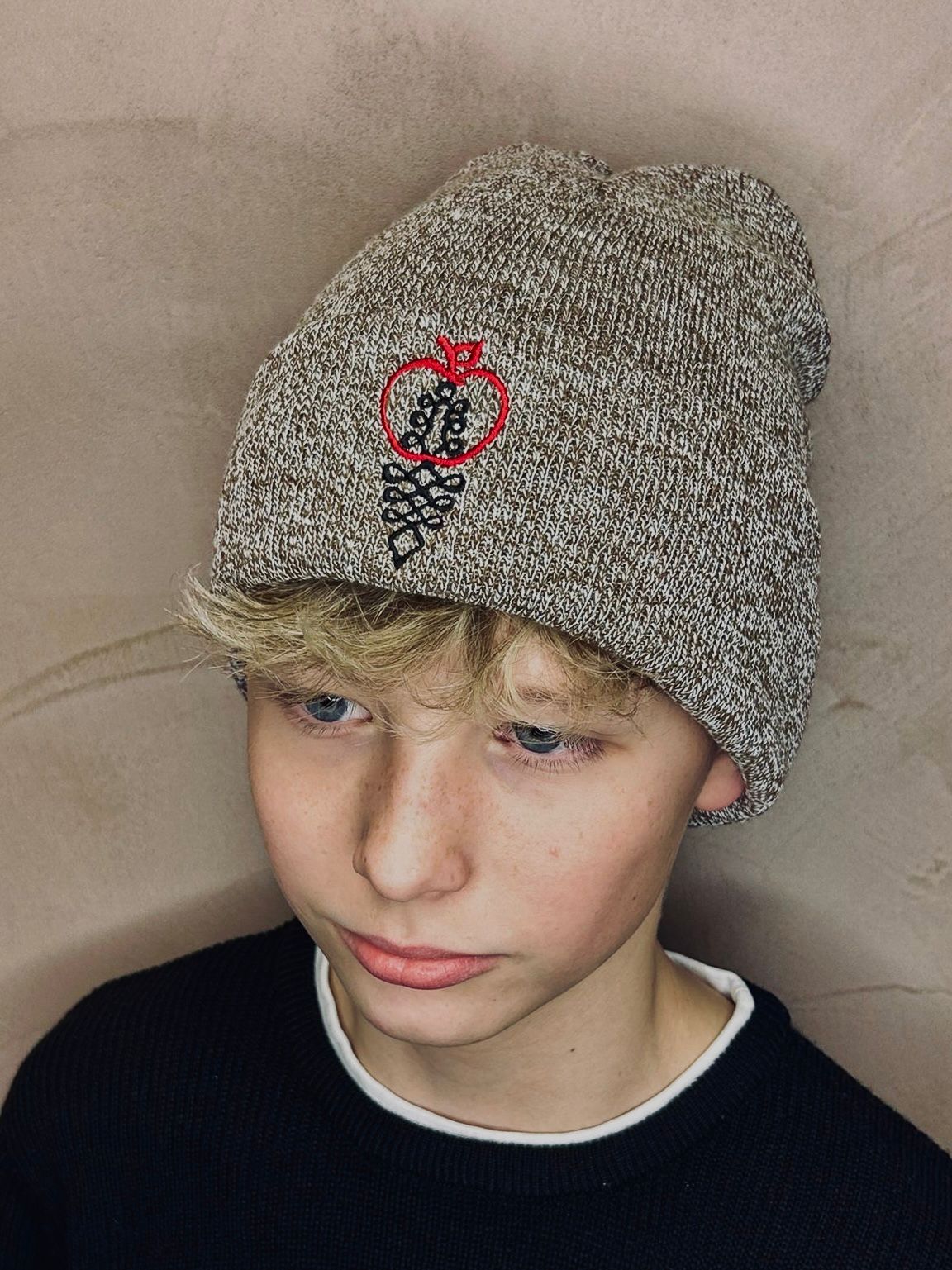 Úpletová zimná čiapka s výšivkou